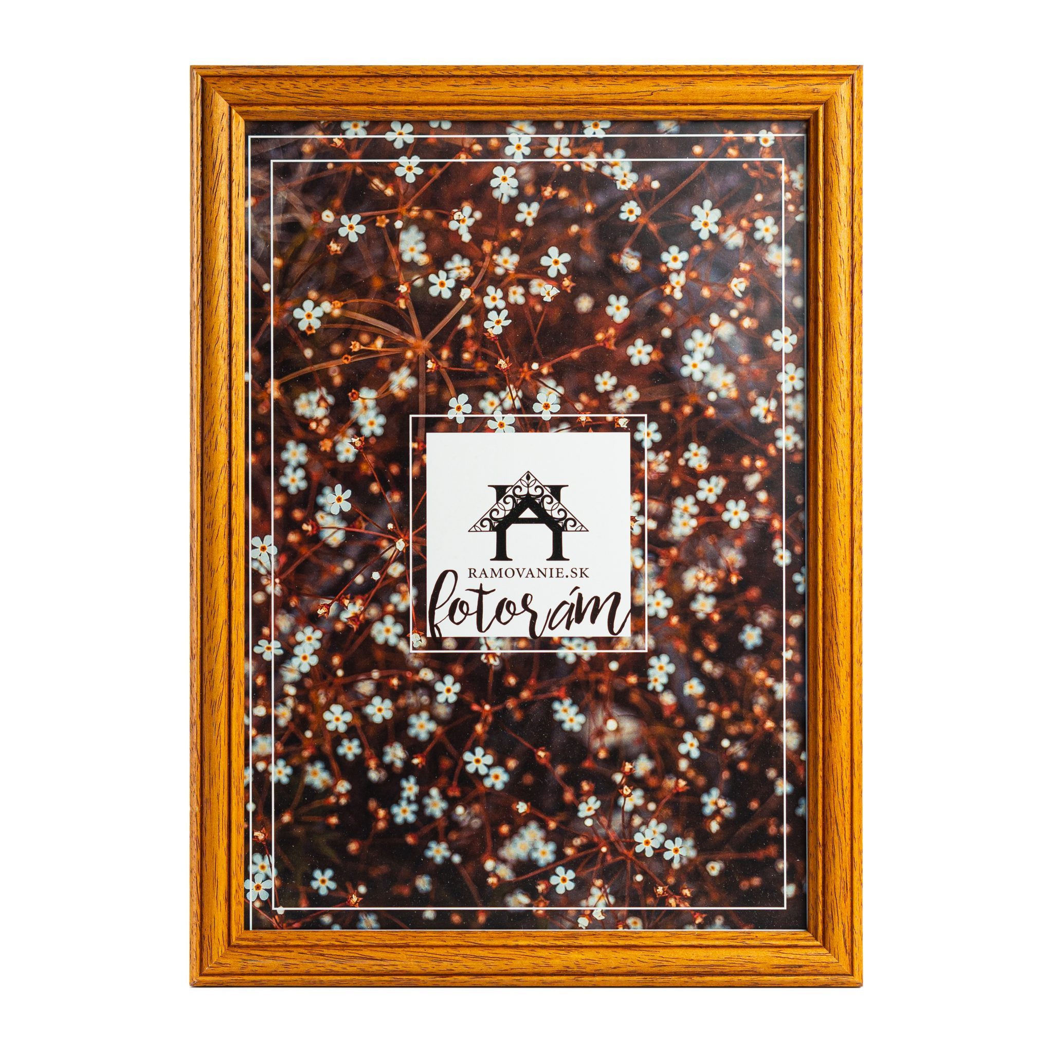 Drevený fotorám medovej farby, dostupný v rôznych rozmeroch.
